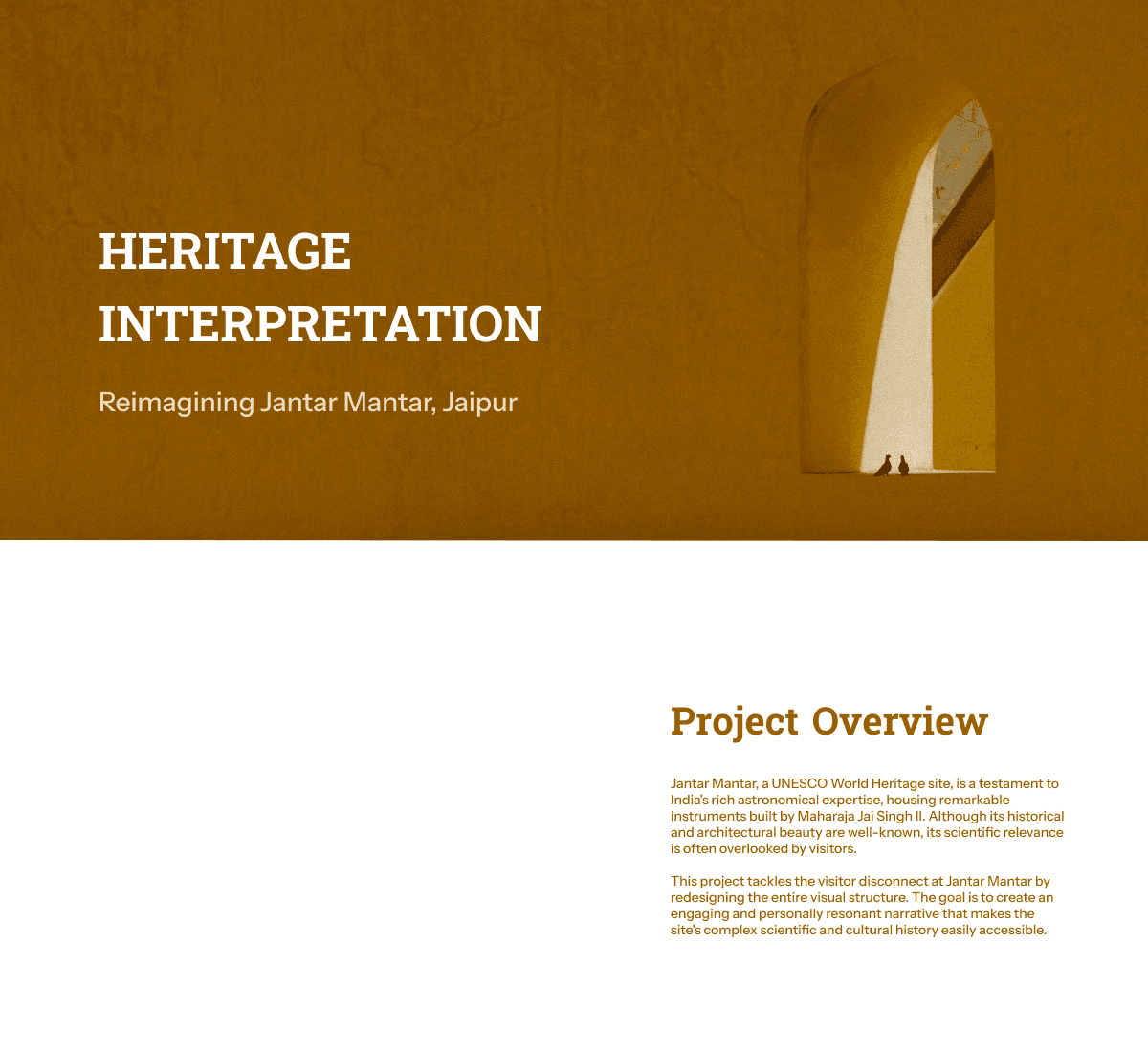 This project tackles the visitor disconnect at Jantar Mantar by redesigning the entire visual structure. The goal is to create an engaging and personally resonant narrative that makes the site's complex scientific and cultural history easily accessible.